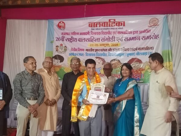 पुरोला : राजस्थान साहित्य अकादमी, विनायक विद्यापीठ (भूणास, भीलवाड़ा) और शिक्षा-साहित्य-सांस्कृतिक पत्रिका ‘बालवाटिका’ के संयुक्त तत्वावधान में आयोजित 26वीं राष्ट्रीय बाल साहित्य संगोष्ठी एवं सम्मान समारोह में बाल साहित्यकार महावीर रवांल्टा को उनके उल्लेखनीय योगदान के लिए ‘श्यामसुंदर नागला स्मृति राष्ट्रीय बालवाटिका सृजन सम्मान-2025’ से नवाजा गया।